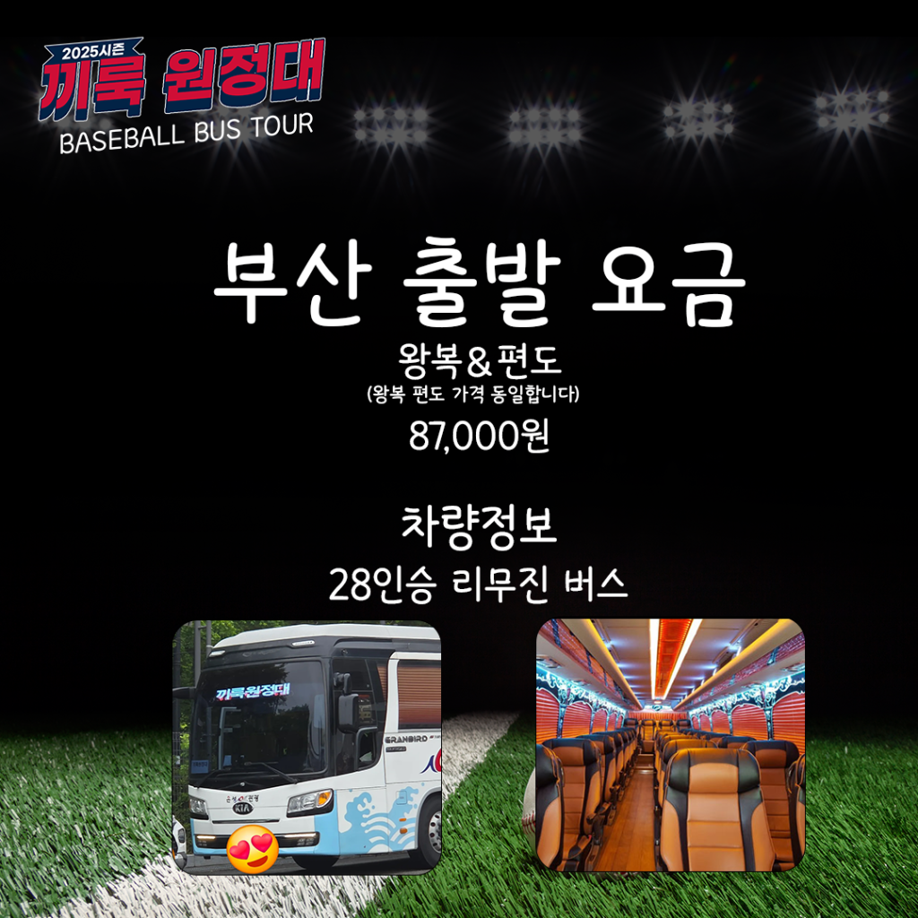 - 경기장 도착후 경기 취소시 탑승객의 동의를 얻어 주변 관광으로 일정이 대체 될 수도 있습니다.