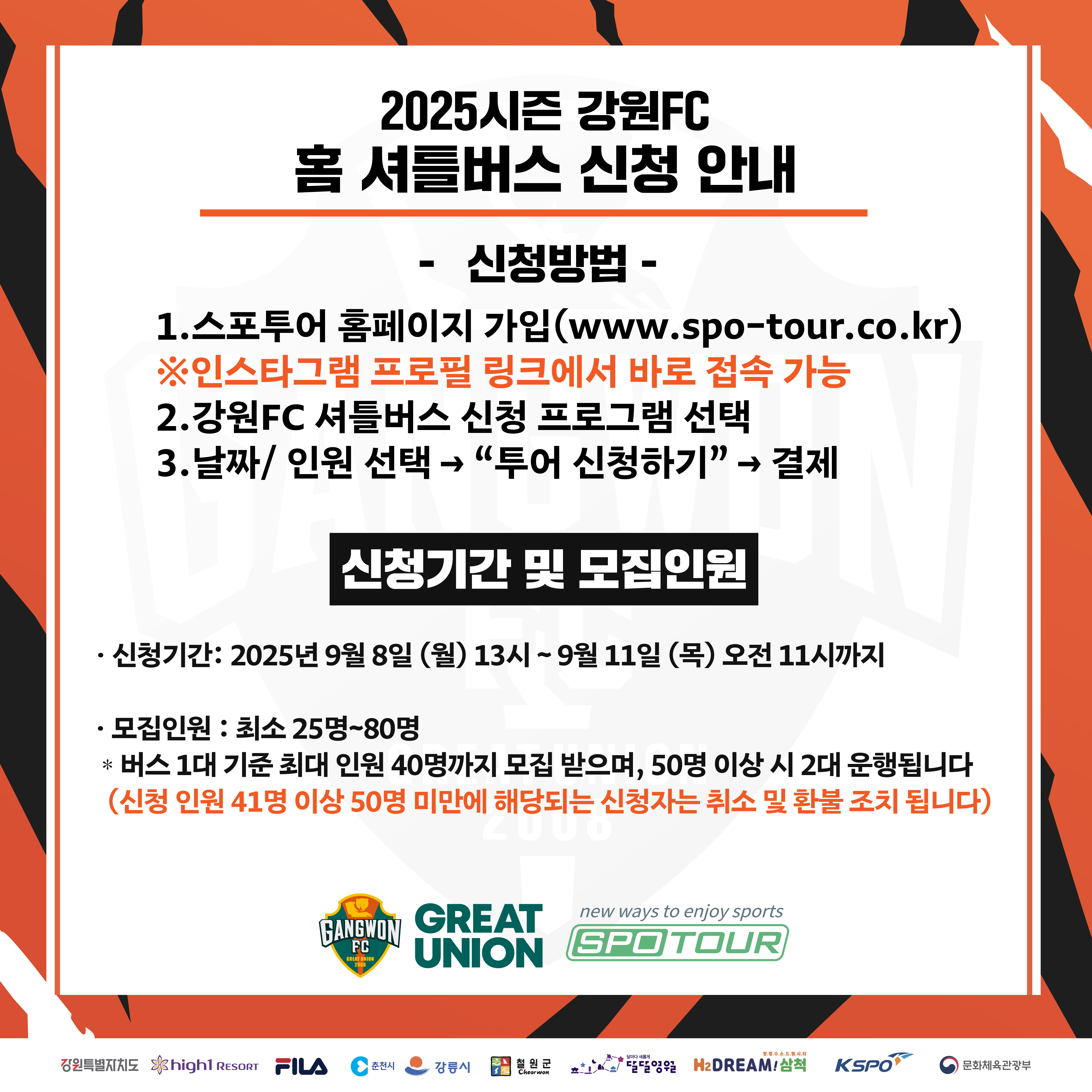 2025시즌 강원FC 홈 셔틀버스 신청 안내