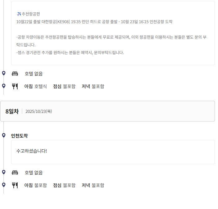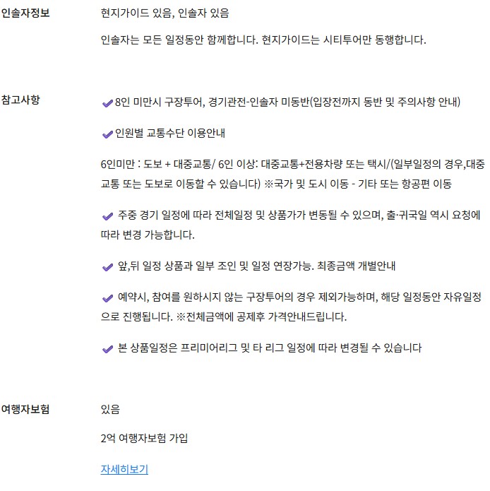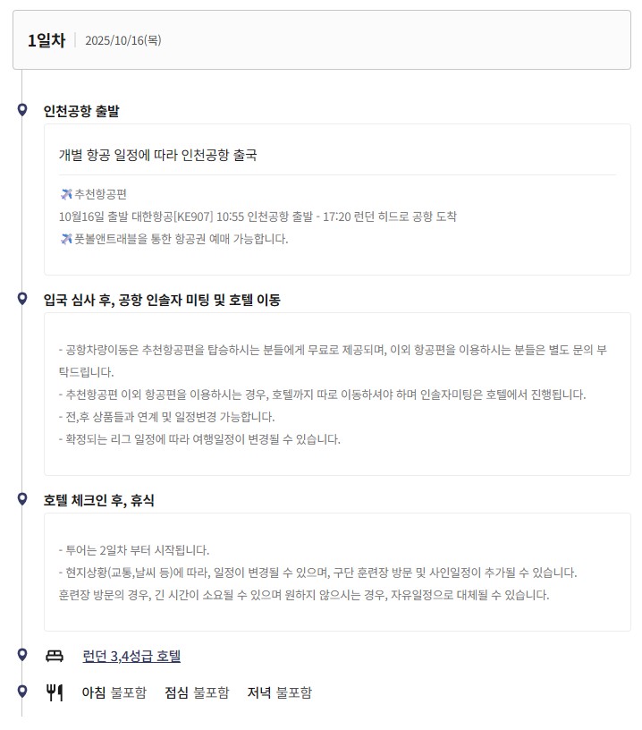 ⚽ 앞,뒤 일정 상품과 일부 조인 및 일정 연장가능. 최종금액 개별안내