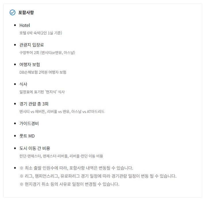 ※ 경기일정 변동에 따른 투어금액 변동이 있을 수 있습니다.