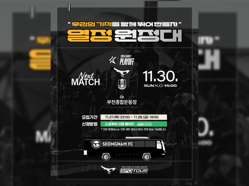 [성남FC] 2025 K리그2 PO 성남FC 열정 원정대 신청 안내