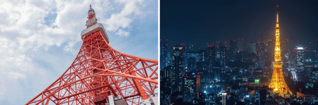 • 1958년에 준공한 도쿄 타워는 도쿄가 활기찬 대도시로 변모하는 모습을 지켜보면서 도시의 변모하는 모습을 지켜보면서