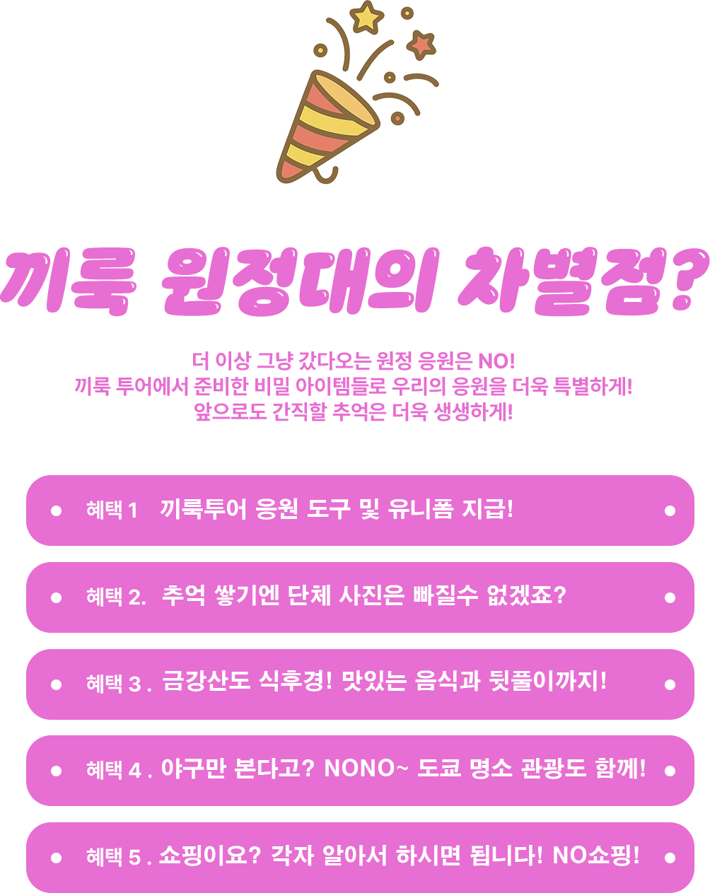 • 혜택1 : 끼룩투어 응원 도구 및 유니폼 지급!