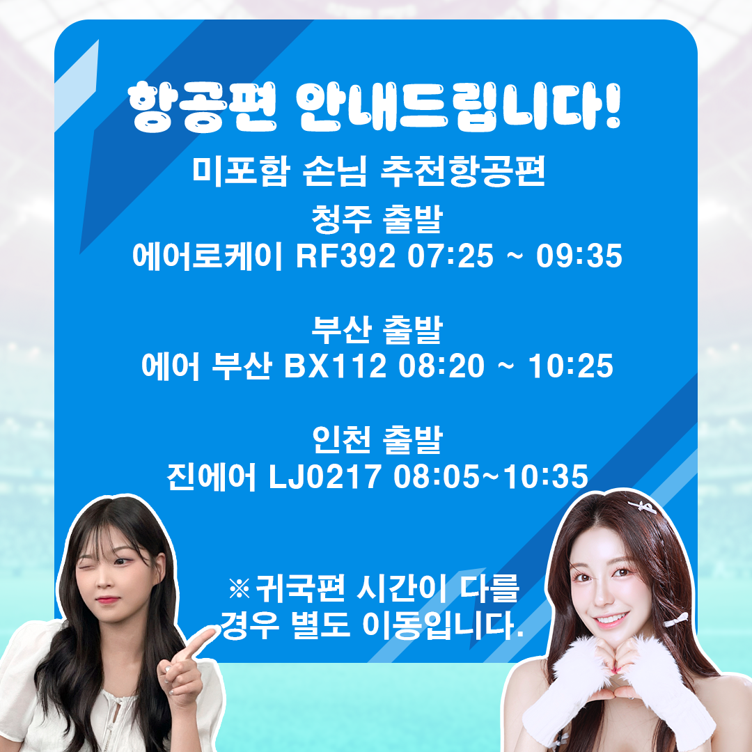 • 동행 : 김연정, 최석화 치어리더와 전 일정 동행합니다💃
